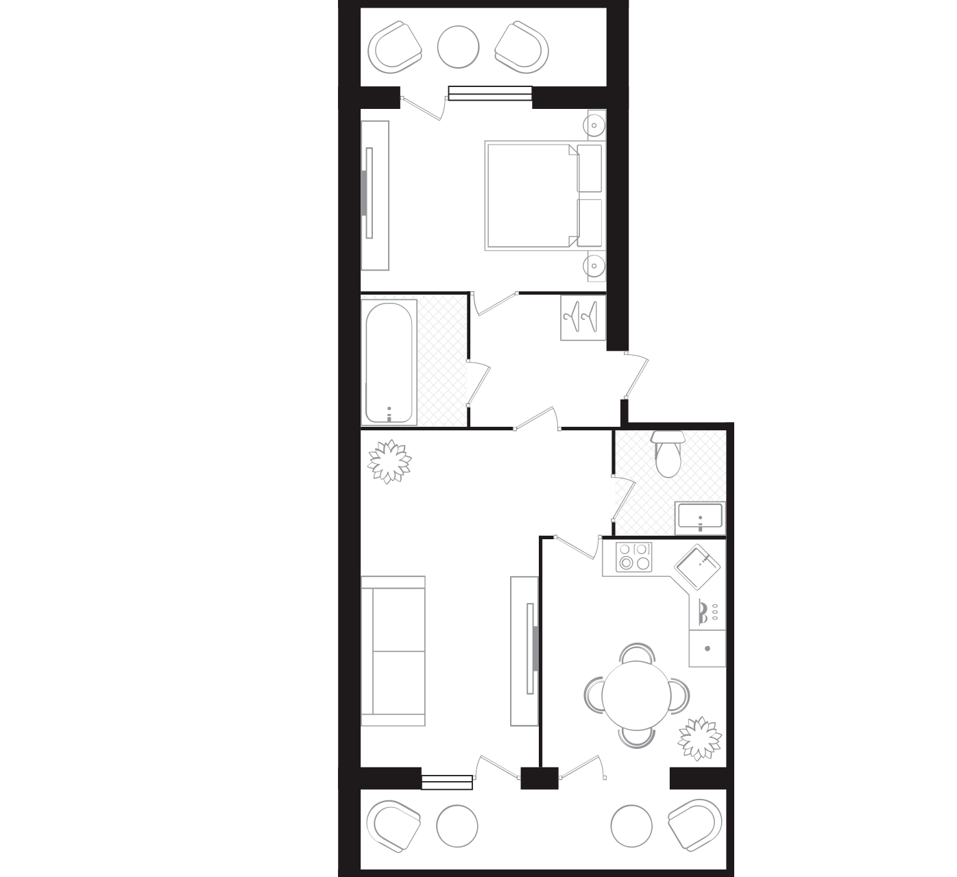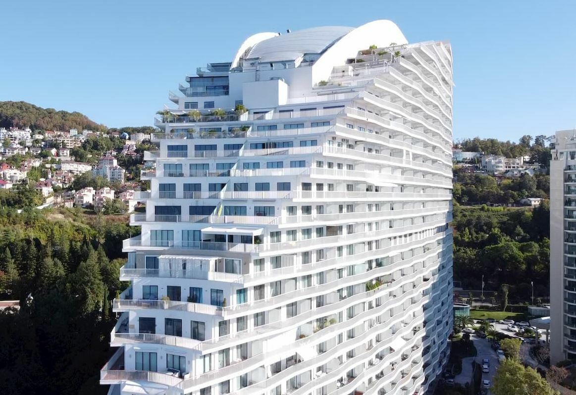 Во всех апартаментах есть лоджии, балконы и панорамные окна, откуда открываются виды на море и горы.