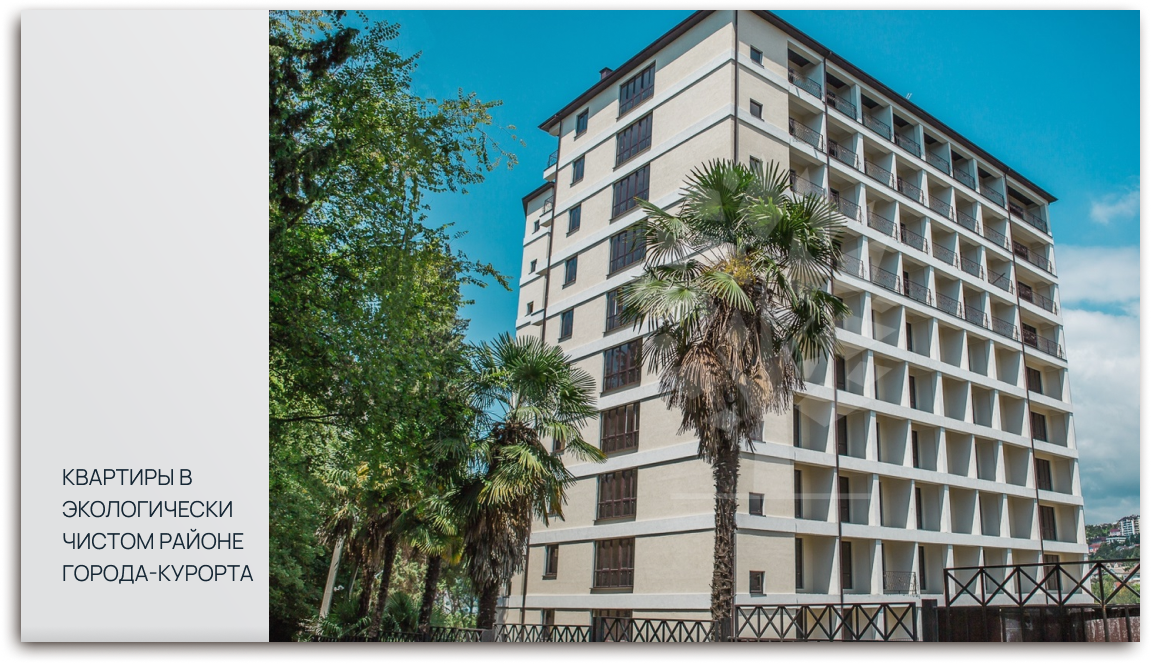 В основании каждого из домов комплекса лежит надежный монолитный каркас из железобетона. Внешняя отделка выполнена фактурной штукатуркой покрашенной в белый цвет, фасады украшены витыми коваными балконными ограждениями, которые выполнены в одном стиле с изящным кованым забором и перилами на уличных лестницах.